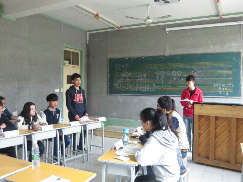 为迎接第七届“理性之光”大学生辩论赛的到来,也为了提高我院辩论赛辩手的能力,丰富同学的课余生活,我院学生会学习部在4月12日上午十点举办了模拟辩论赛。