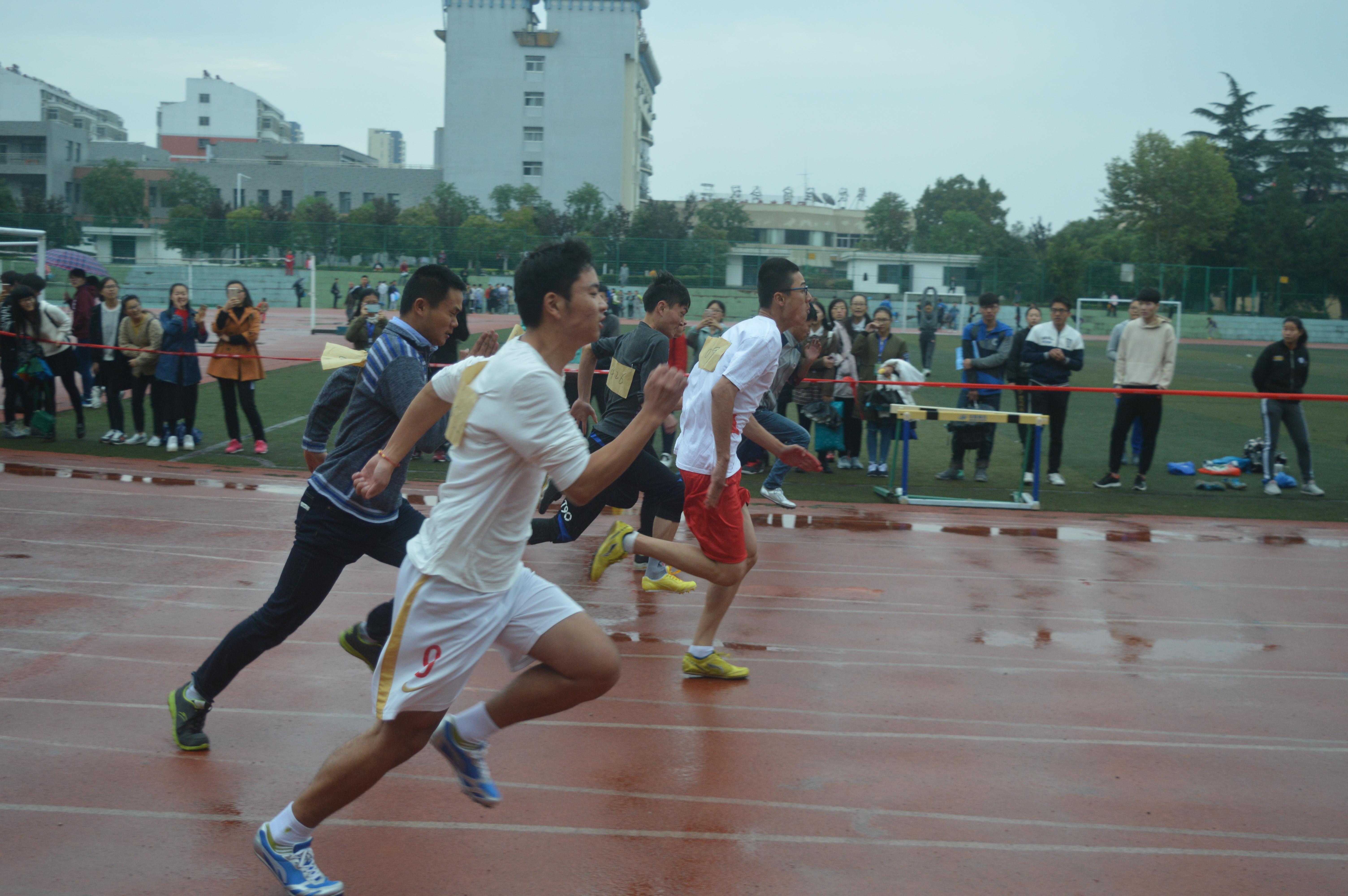 在比赛过程中时不时伴着小雨,大雨,但是风雨没有击退我们运动员的步伐,反而使他们勇敢前行。在比赛的过程中我们学院的男生带着院旗跟着运动员一起跑,带动了运动员的激情。在女子跳高中我院荣获了第二。在女生1500米的时候跟着一起同跑的人给了运动员最大的动力。在男子四×四百米接力中我院的男生都发挥出了十足的精力,虽然没有取得很好的成绩,但是我院依然为他们感到骄傲。