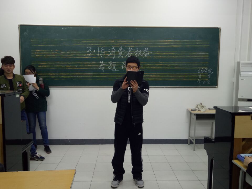 3月15日中午12:00音乐学院学生会在音教一举办了3·15消费者权益的专题讲座,全院各年级代表参加了此次专题讲座。讲座的过程中,同学们积极参与,热情的发言,对待讲座的内容十分的认真,同学们通过这场讲座可以联想到自己的经历,从而在以后的消费中更好地维护自己的利益。
