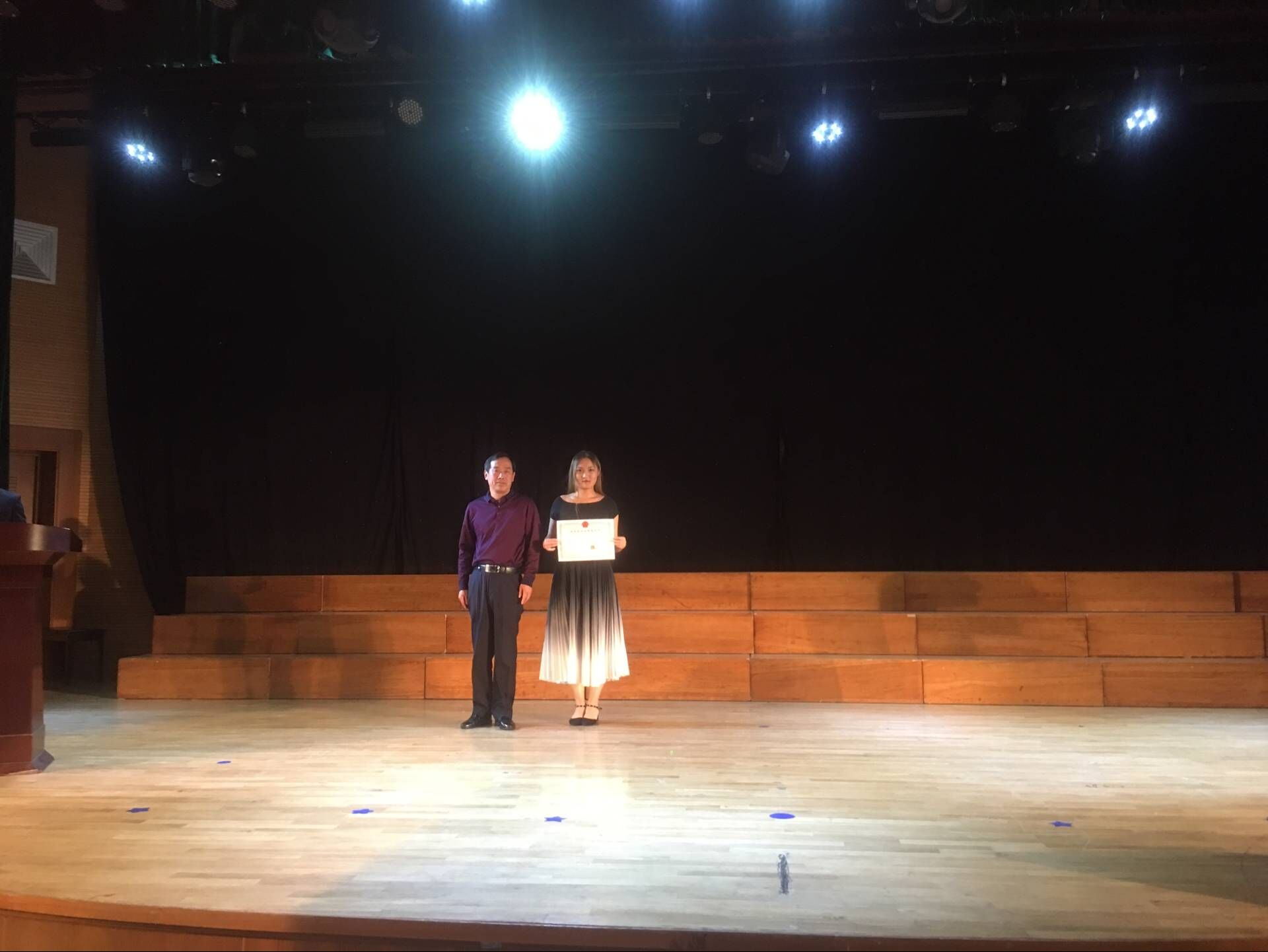 为进一步加强学院学风建设,充分发挥优秀学生模范带头作用,5月8日上午,音乐学院在音乐厅举行了国家奖学金颁奖大会暨优秀学生经验交流会。音乐学院党总支书记张广礼、团委书记况雪出席此次会议。2015级学生梁志豪担任本次大会的支持人。