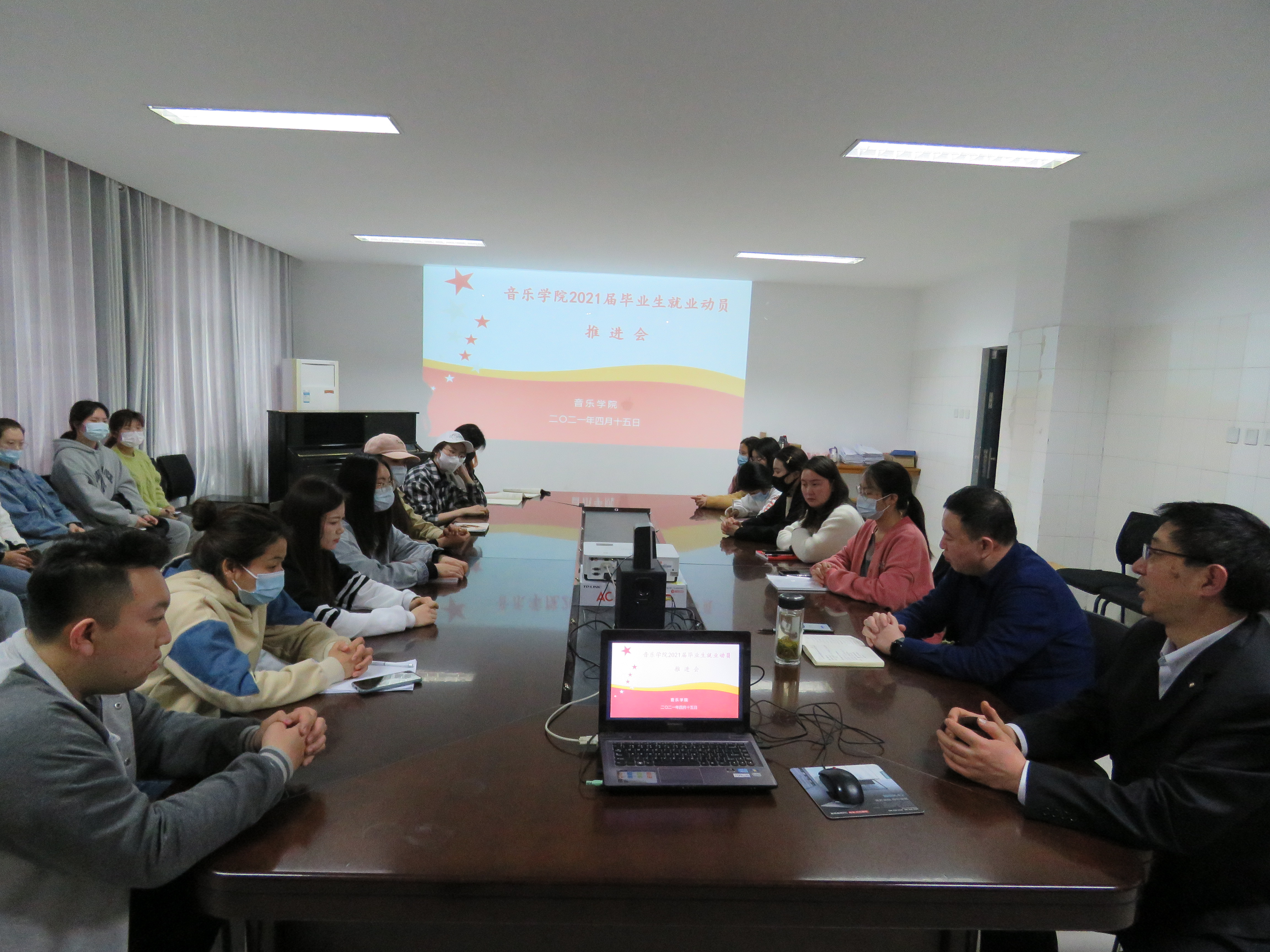 4月15日,音乐学院在学院会议室召开“2021届毕业生就业工作推进会”专题会议。院党总支书记张太专、副书记李景刚、毕业班辅导员,毕业班党员、发展对象、学生骨干等参加会议。会议由副书记李景刚主持。