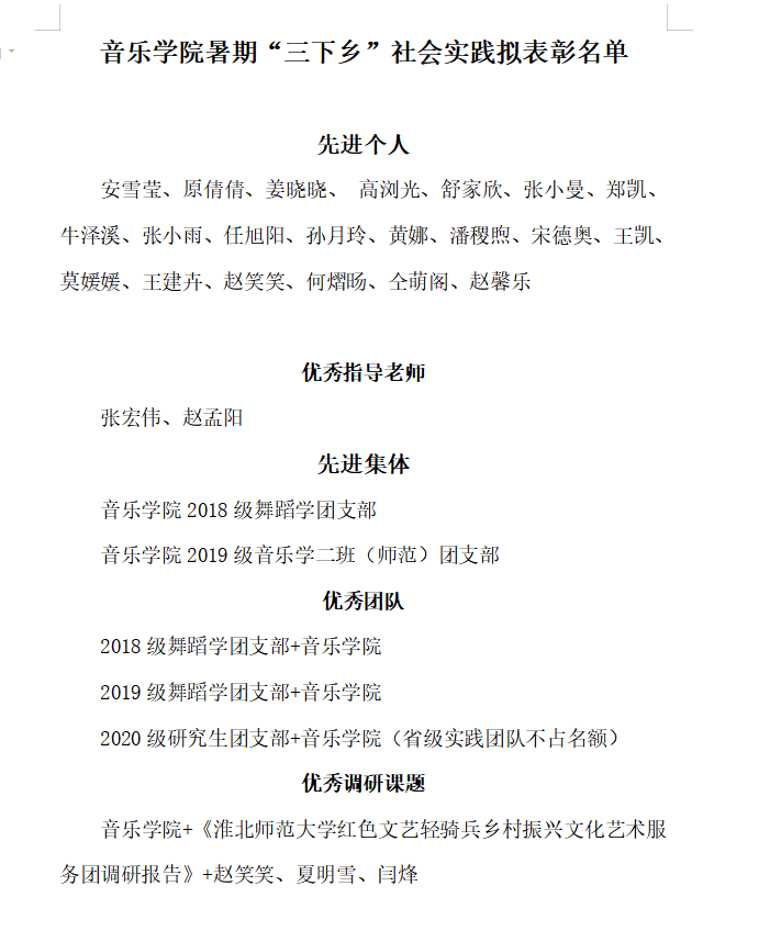 附:音乐学院暑期“三下乡”社会实践拟表彰名单